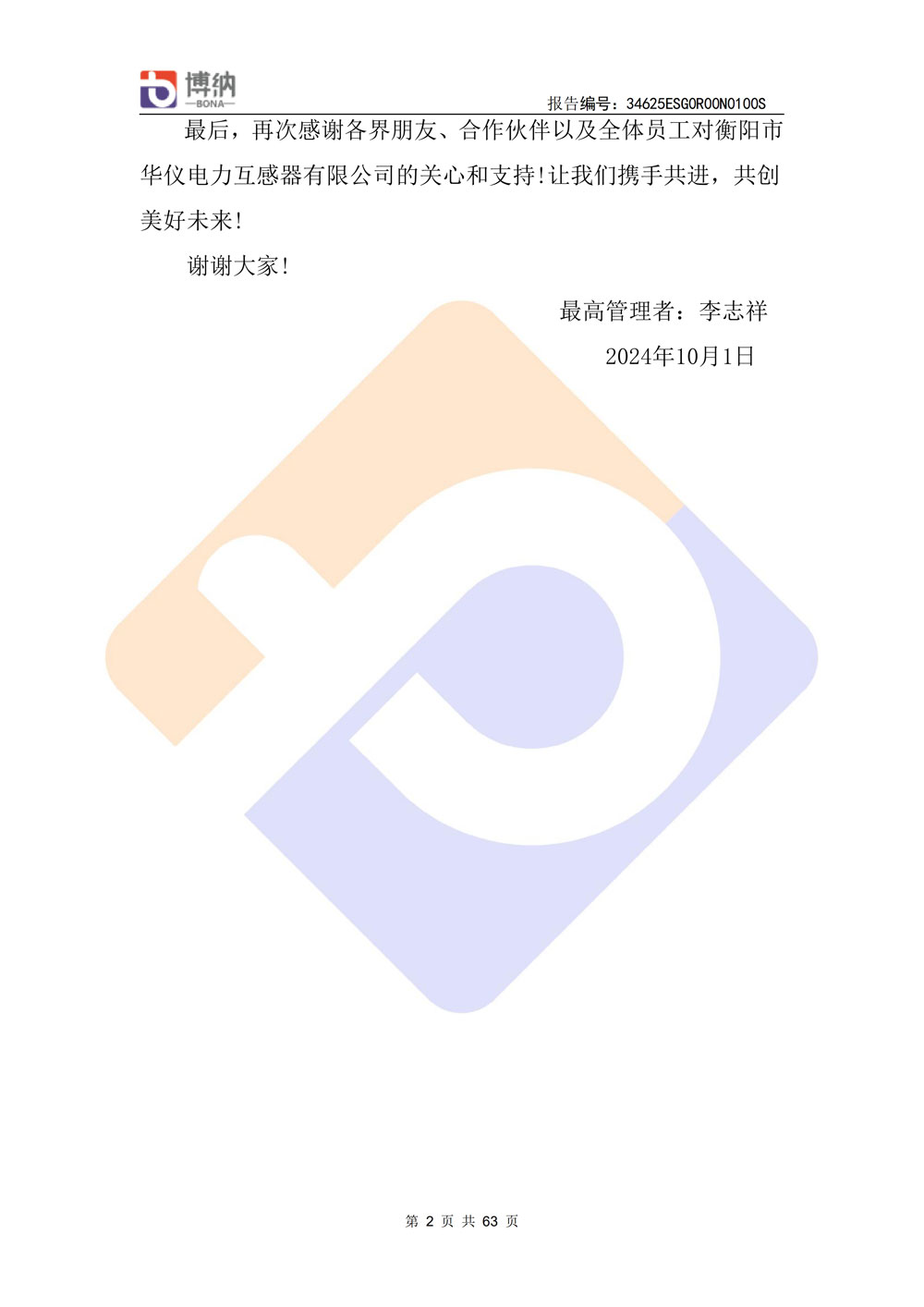 衡陽(yáng)市華儀電力互感器有限公司環(huán)境、社會(huì)及治理(ESG)報(bào)告