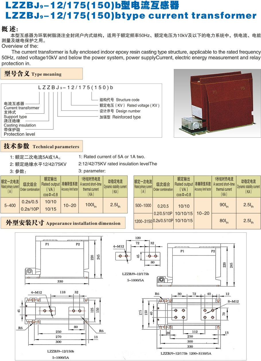 LZZBJ9-12/175(150)b型電流互感器
